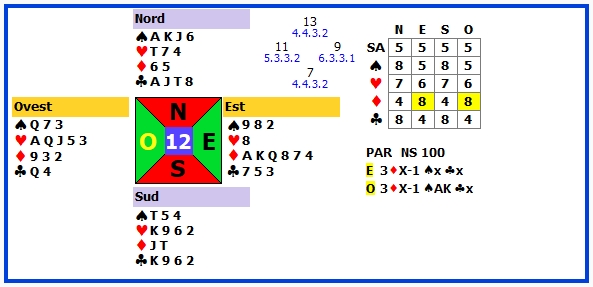 13 | 3♦ -1 | E | ♠T | 50 | 110 |