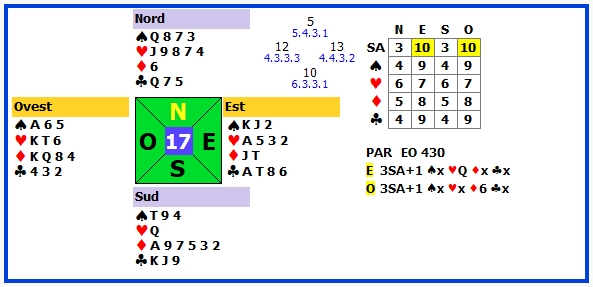 13 | 3SA | O | ♥9 | 400 | 103 |