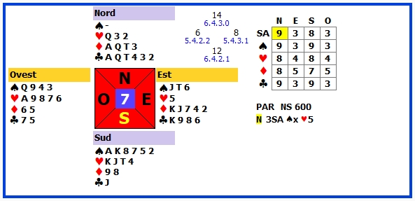 7 | 3SA +2 | N | ♦4 | 660 | 110 |