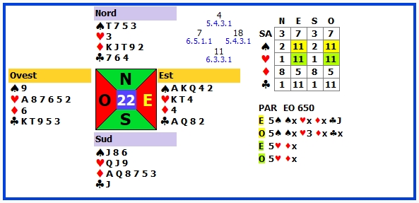 11 | 4♥ +1 | O | ♦J | 650 | 111 |