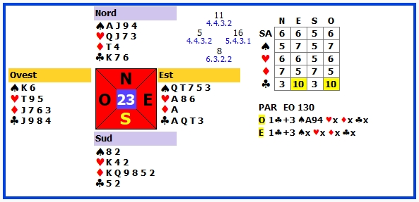 8 | 3♣ +1 | E | ♦K | 130 | 104 |