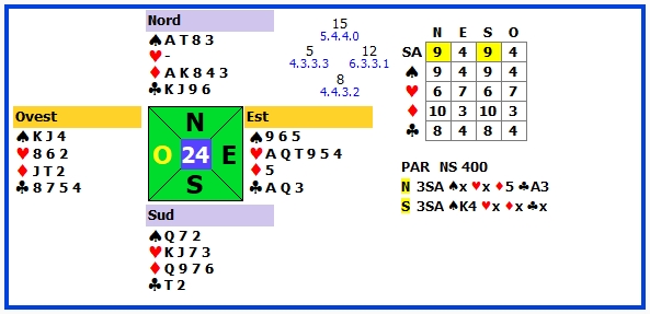 | 9 | 3SA -1 | S | ♥8 | 50 | 105 |