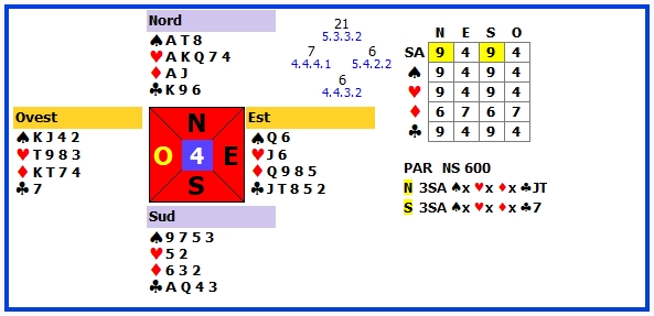 | 5 | 3SA | N | ♦5 | 600 | 106 |