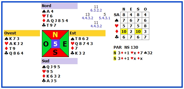 | 5 | 3♦ +1 | N | ♥3 | 130 | 106 |