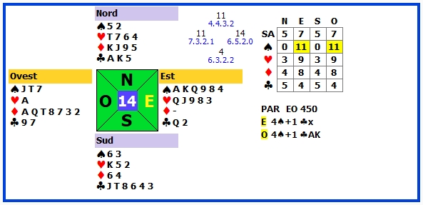 1 | 4♠ +1 | E | ♣J | 450 | 106 |