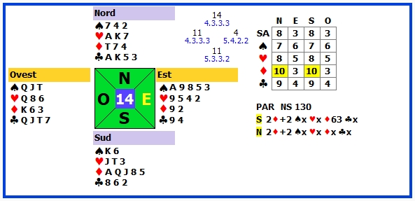 1 | 2♦ +2 | S | ♠Q | 130 | 107 |