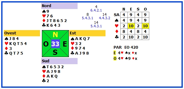 4 | 4♣ | E | ♦A | 130 | 103 |