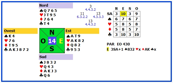 13 | 3SA +1 | E | ♥3 | 430 | 112 |