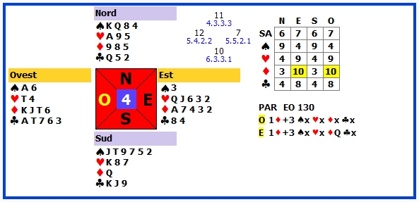 8 | 4♦ | E | ♠J | 130 | 107 |