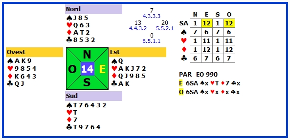 13 | 4♥ +2 | E | ♦7 | 480 | 110 |