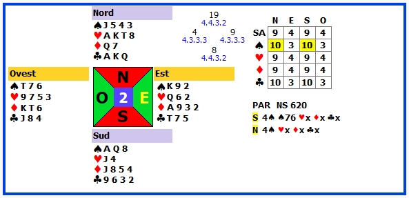 10 | 3SA +2 | N | ♦2 | 660 | 101 |