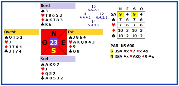 1 | 3SA +1 | S | ♥7 | 630 | 115 |