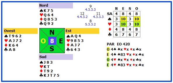 13 | 4♥ | O | ♦3 | 420 | 104 |