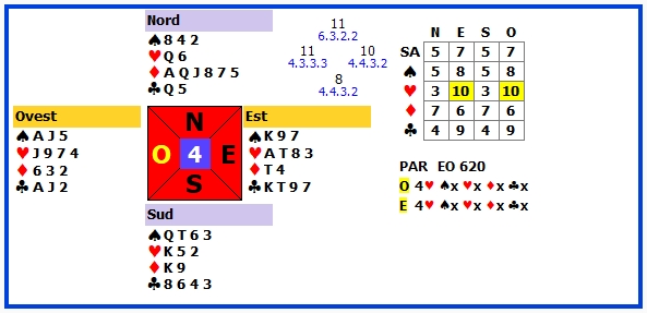 | 4 | 2♦ -1 | N | ♦4 | 100 | 106 |