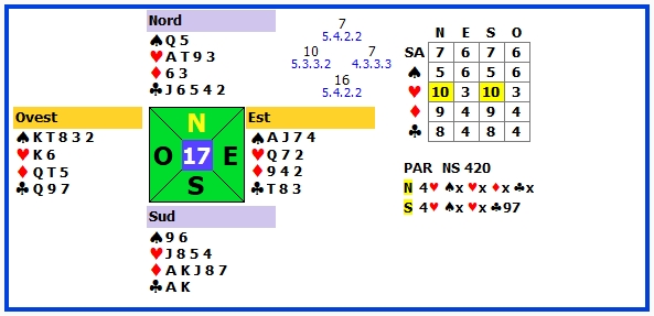| 1 | 4♥ | S | ♣7 | 420 | 102 |