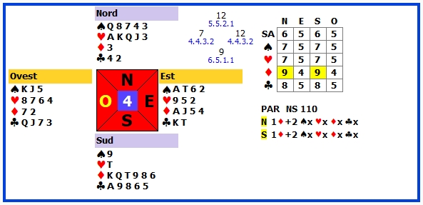 | 5 | 3SA -1 | S | ♣7 | 100 | 110 |