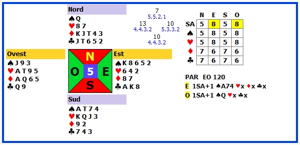 | 6 | 1SA +1 | O | ♦3 | 120 | 111 |
