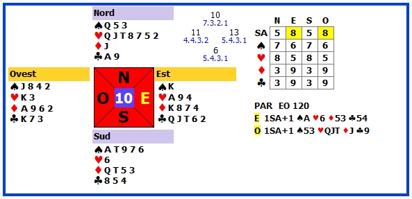 | 9 | 4♦ -1 | E | ♠A | 100 | 112 |
