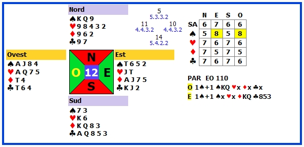 | 12 | 2♠ -1 | E | ♦K | 50 | 111 |