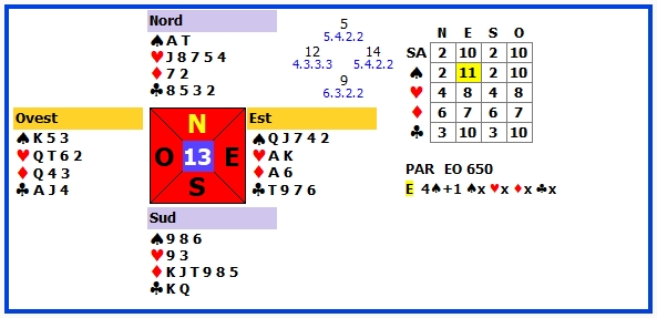 | 11 | 4♠ | E | ♣K | 620 | 106 |