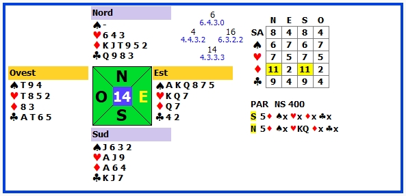 | 15 | 1♠ +2 | E | ♦4 | 140 | 110 |