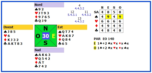 | 1 | 2♠ +1 | E | ♥2 | 140 | 106 |