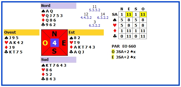 | 12 | 3SA +4 | O | ♥3 | 720 | 103 |