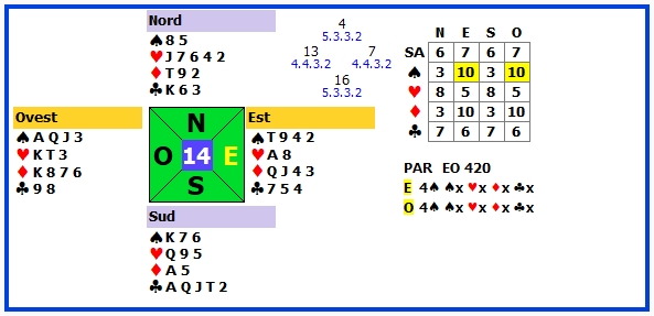 | 4 | 2♥ +1 | S | ♣9 | 140 | 104 |