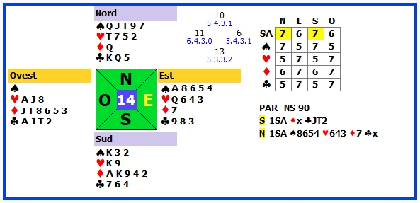 | 7 | 1SA +2 | S | ♦3 | 150 | 110 |