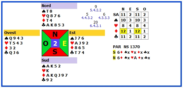 | 4 | 3SA +2 | N | ♥2 | 660 | 105 |