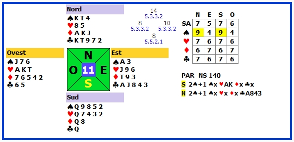 | 1 | 2♠ +1 | S | ♦7 | 140 | 105 |