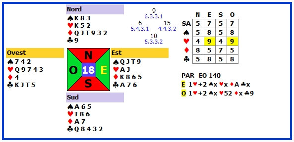 | 9 | 2♥ +1 | E | ♦A | 140 | 110 |