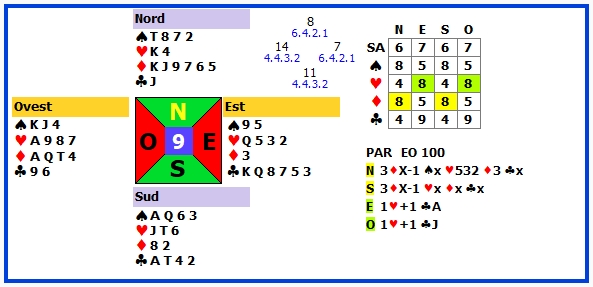 | 9 | 2♥ +1 | E | ♦8 | 140 | 104 |