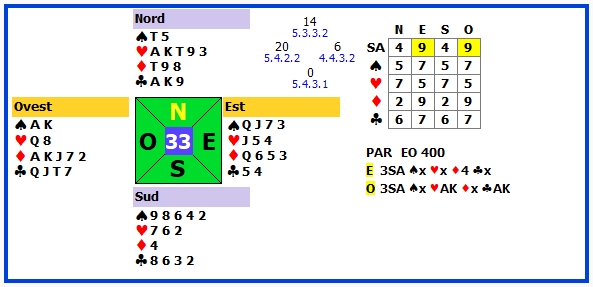 | 1 | 3SA | E | ♥7 | 400 | 106 |