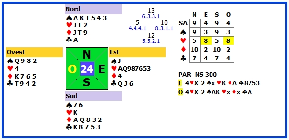 | 13 | 4♥ X -2 | E | ♠7 | 300 | 109 |