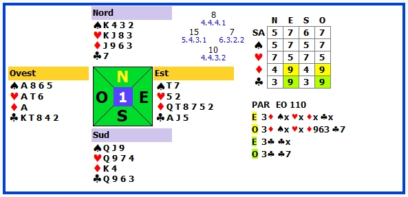 | 2 | 3♦ -1 | E | ♥4 | 50 | 111 |