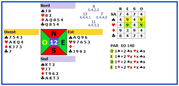 | 2 | 2♥ +1 | E | ♣A | 140 | 105 |