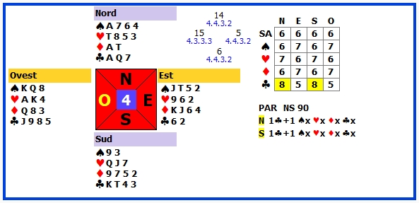 | 4 | 1SA +2 | O | ♥T | 150 | 101 |