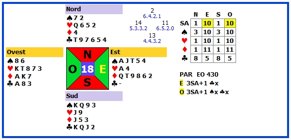 | 4 | 3SA +1 | O | ♣7 | 430 | 111 |