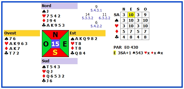 | 4 | 3SA +2 | O | ♣3 | 460 | 102 |