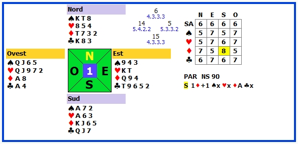 | 1 | 1SA -1 | S | ♥2 | 50 | 106 |