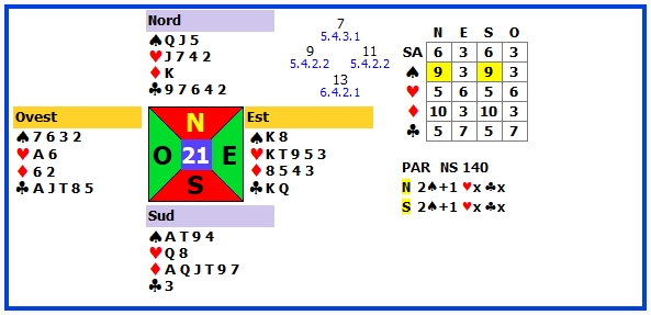 | 2 | 2♦ +2 | S | ♣5 | 130 | 101 |