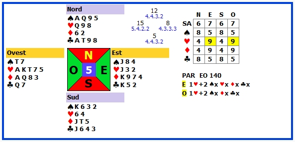 | 2 | 2♥ +1 | O | ♦6 | 140 | 107 |