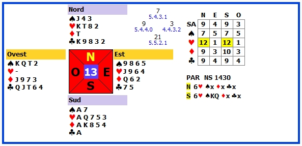 | 5 | 4SA +1 | S | ♠Q | 660 | 101 |