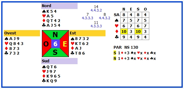 | 6 | 3♦ +1 | N | ♥2 | 130 | 105 |