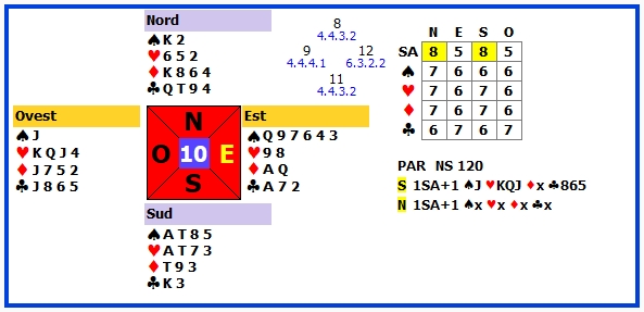 | 10 | 2♠ | E | ♦T | 110 | 109 |
