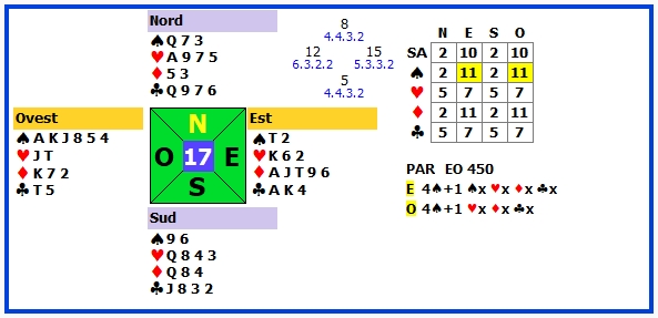 | 4 | 4♠ +2 | E | ♣2 | 480 | 110 |