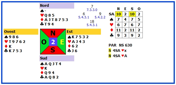 | 7 | 3SA +2 | N | ♥3 | 660 | 102 |