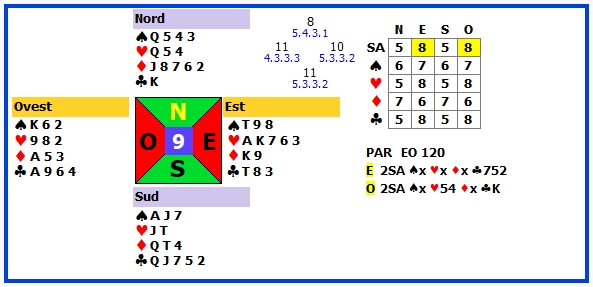 | 1 | 3♥ | E | ♦4 | 140 | 108 |