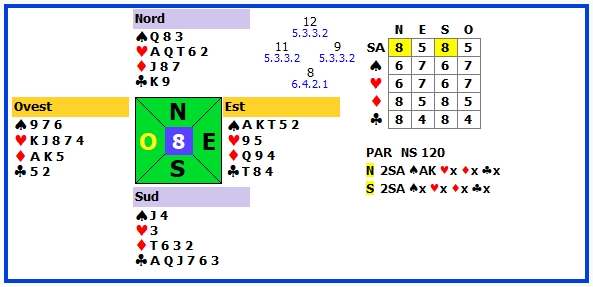 | 3 | 1SA +1 | S | ♥4 | 120 | 103 |